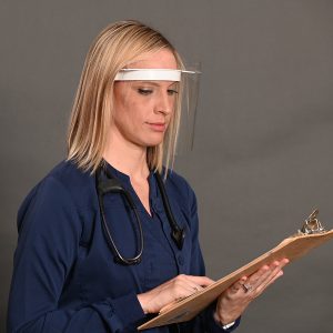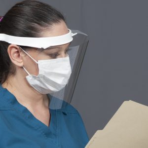 Face Shield provides lightweight, inexpensive total facial protection from infection causing spray, splatter and debris.